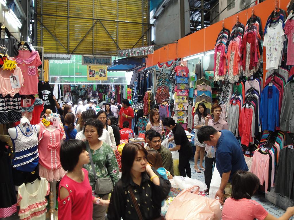 This ist at Pratunam, one of Bangkok’s famous market for clothes of all kind. Das hier ist in Pratunam, einem von Bangkoks bekannten Märkten für Kleidung jeglicher Art.