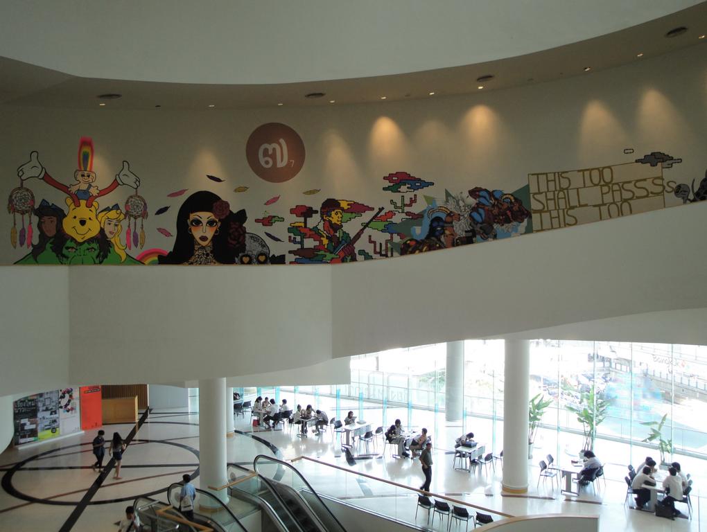 After long time outside in the heat I went to the ‚BACC‘ – Bangkok Art and Culture Centre. It’s a museum of contemporary arts with a few small coffee shops and changing exhibitions. Nach langer Zeit draußen in der Hitze ging ich zum ‚BACC‘ – Bangkok Art und Kultur Zentrum. Es handelt sich um ein Museum für zeitgenössische Kunst mit wechselnden Ausstellungen und einigen kleinen Cafes.