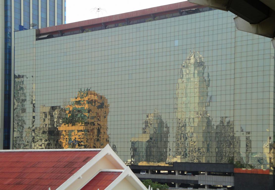 A small part of Bangkok’s skyline in the mirror … Ein kleiner Teil von Bangkok’s Skyline im Spiegel …