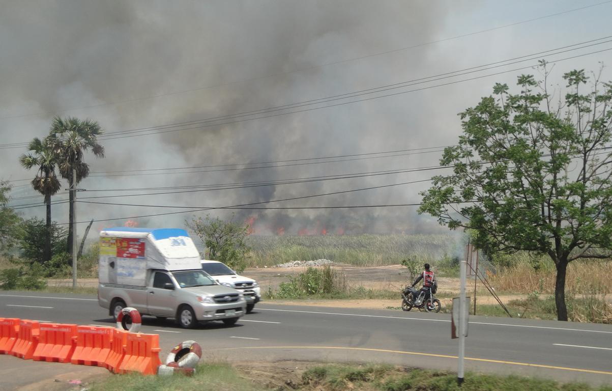 Obviously approaching the North-East: Burning down old sugar cane branches … Offennbar kamen wir dem Nordosten näher: Man brannte alte Zuckerrohrzweige nieder …