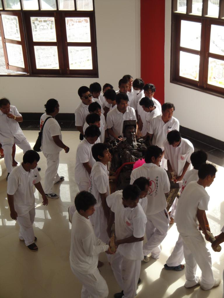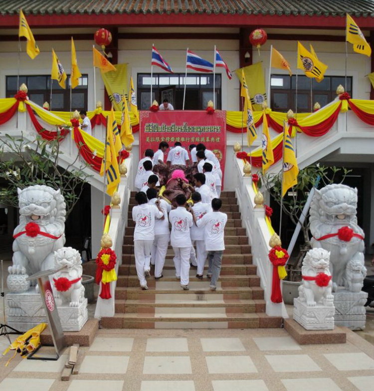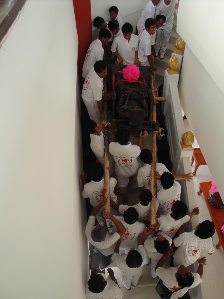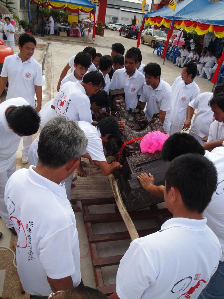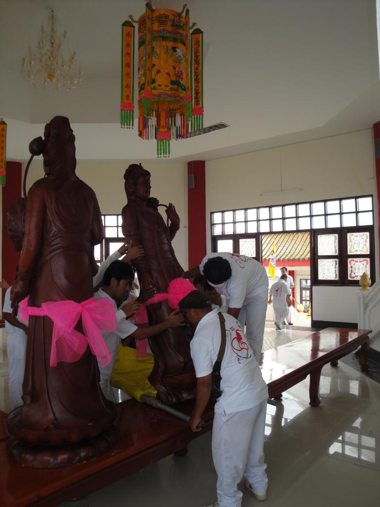 One day a Thai friend of mine invited me to join her on a car trip to Mukdahan and watch the arrival ceremony of a few wooden statues for the shrine.