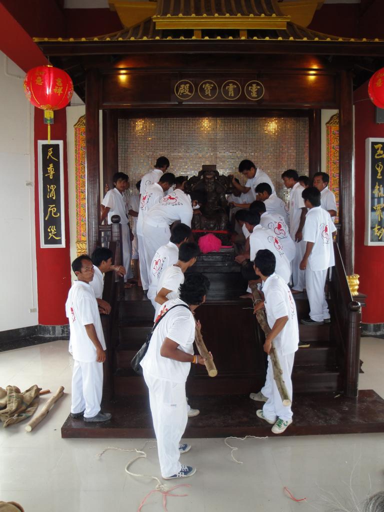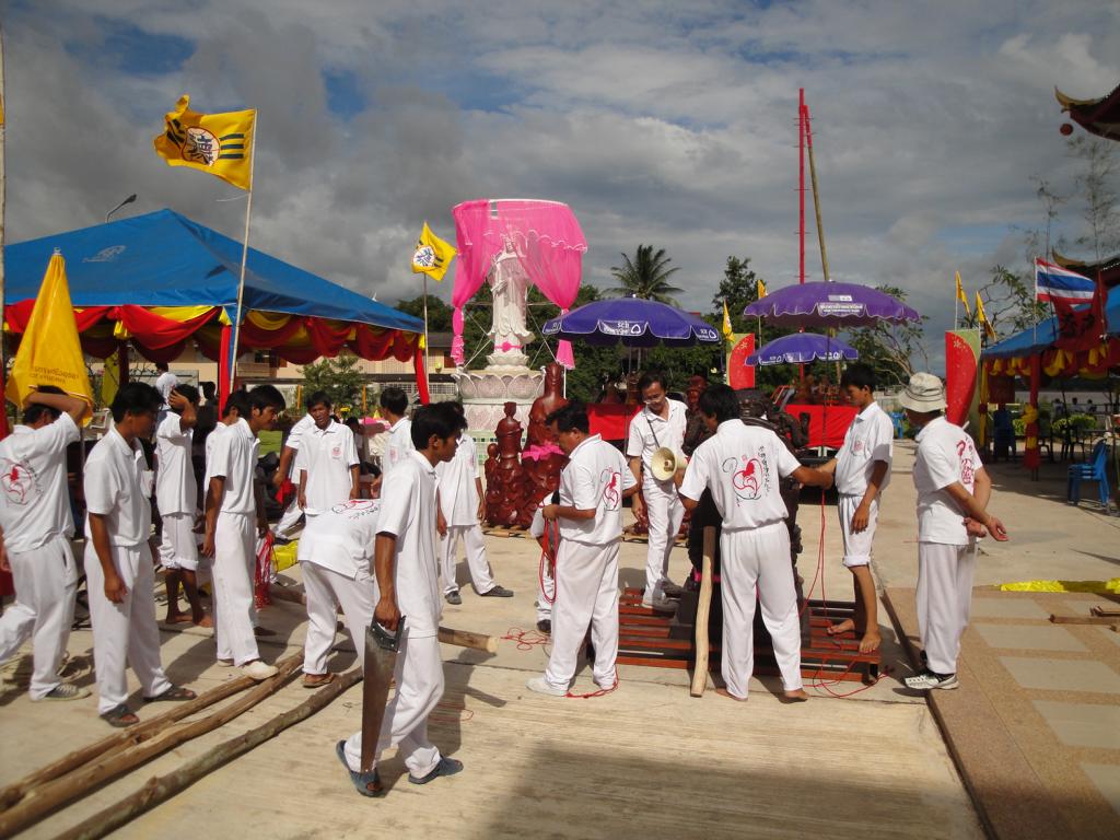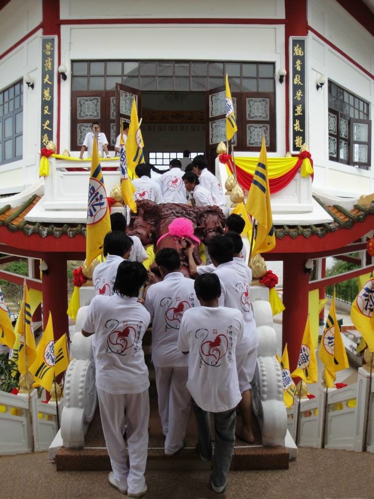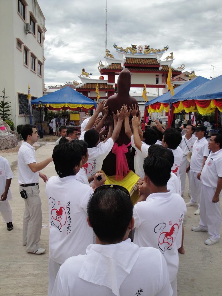 One day a Thai friend of mine invited me to join her on a car trip to Mukdahan and watch the arrival ceremony of a few wooden statues for the shrine.